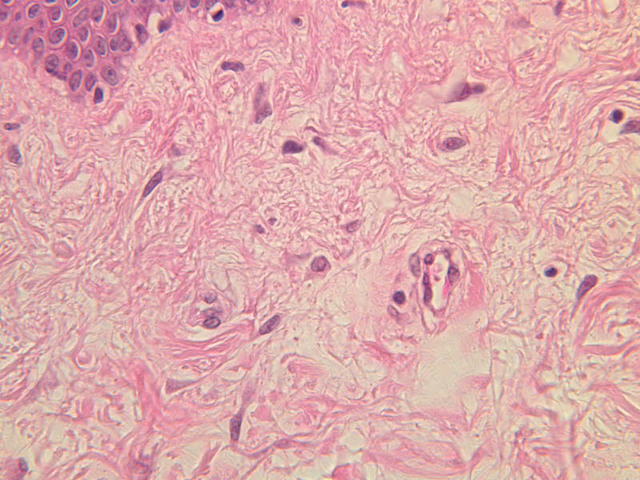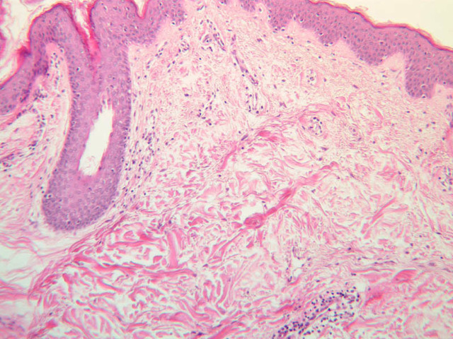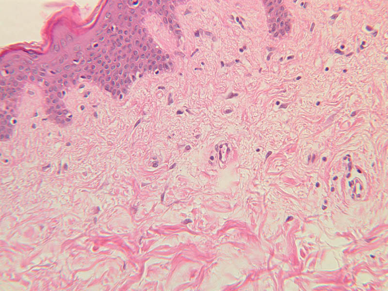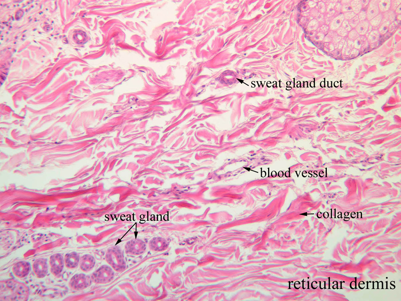 boundary between the papillary layer and the reticular layer is not distinct. Examine and