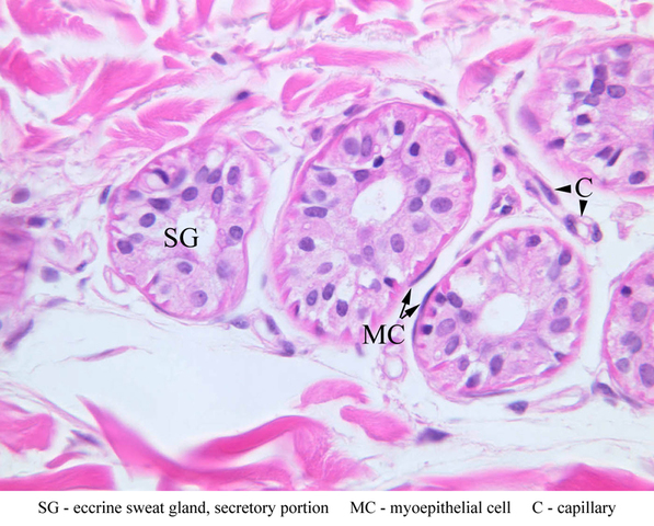 hands and soles of feet, referred to as glabrous skin. The stratum corneum is very thick in