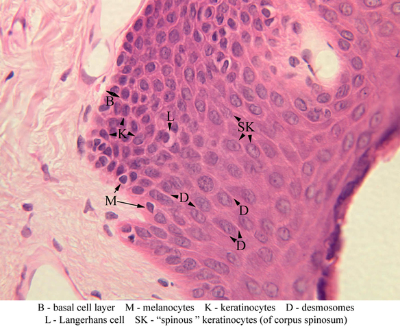Superficial to the stratum basale is a multi-cellular layer known as the stratum